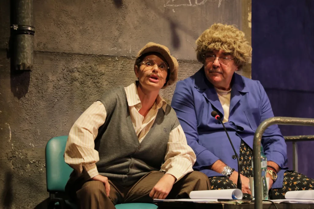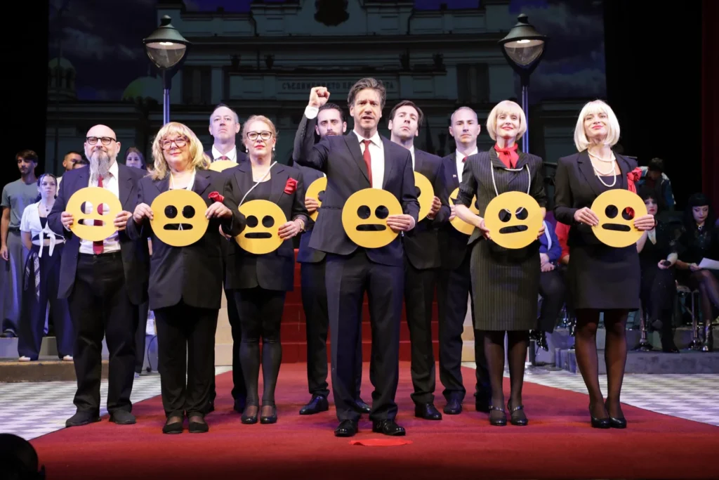 Българският народ – „този символ на издръжливостта, граничеща с глупост“ – това е централният герой в Политическо сатирично кабаре – 2025 В името на народа!, чиято премиера се състоя неотдавна в Сатиричен театър „Алеко Константинов“. Автор е Богдана Костуркова, постановката е дело на Николай Младенов, а освен че е режисьор, Калин Сърменов се изявява и като актьор – в добре познатата ни от предишните издания на Кабарето роля на Баба Калина. Заедно с Дядо Сашо в изпълнението на Александра Сърчаджиева са своего рода водещи на шоуто спектакъл. Типични хорица от народа, тя е облечена в работническа синя престилка, а той – с пуловерче и каскет на главата.
