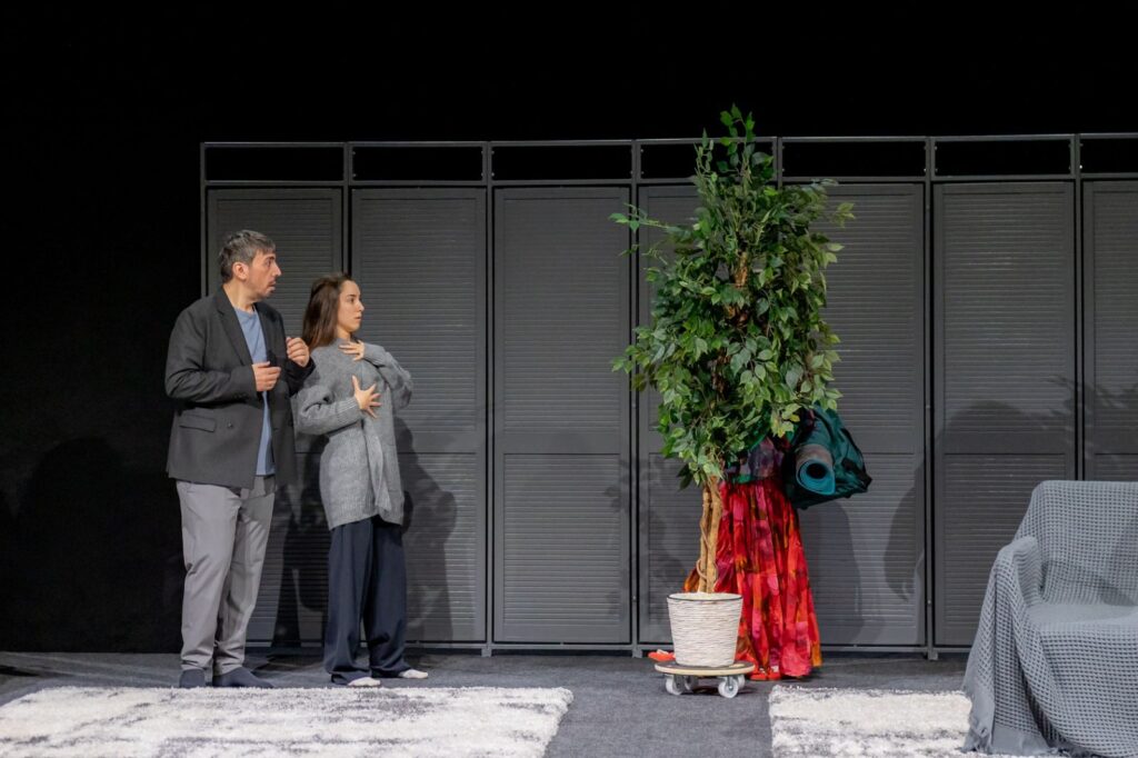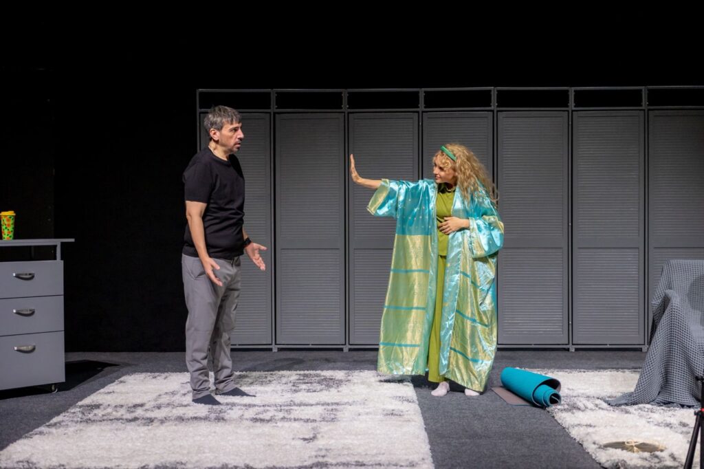 „Една история за тръгванията, завръщанията и смелостта да продължиш напред – с хумор и човешка дълбочина“, така определят от екипа настоящия спектакъл, в който сценичната половинка на Геро е също любимка на публиката – Стефания Колева. Пъстра като ара, героинята ѝ Лора нахлува в сиво-черния живот на дъщеря си и съпруга си, от който си е тръгнала преди три години, без да даде никакво обяснение (създател на концептуалните костюми, както и на сценографията, е Мира Каланова). Почти до края на постановката и близките ѝ, и зрителят чувстват бремето на тази недоизказаност, очаквайки отговора на все по-изгарящия въпрос „защо“. Някак витално очарователна е актрисата в образа на ексцентричната майка, която в един момент не спира да говори за ашрами, медитация, чакри, а в следващия пуши трева и най-безцеремонно въвлича в сюрреалистичните си преживявания изтормозения си съпруг.